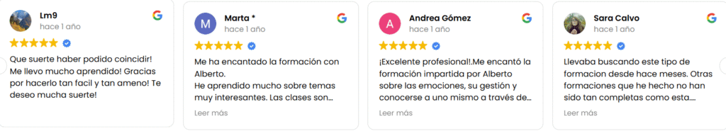 Nada mejor que escuchar a quienes ya han pasado por esta formación. Las experiencias de los alumnos de Alberto Valvedre hablan por sí solas: personas que llegaron con estrés, ansiedad o simplemente con ganas de entenderse mejor, y encontraron herramientas reales para sentirse más tranquilos y en equilibrio. Aquí puedes leer sus historias y descubrir cómo esta formación también podría ayudarte a ti.